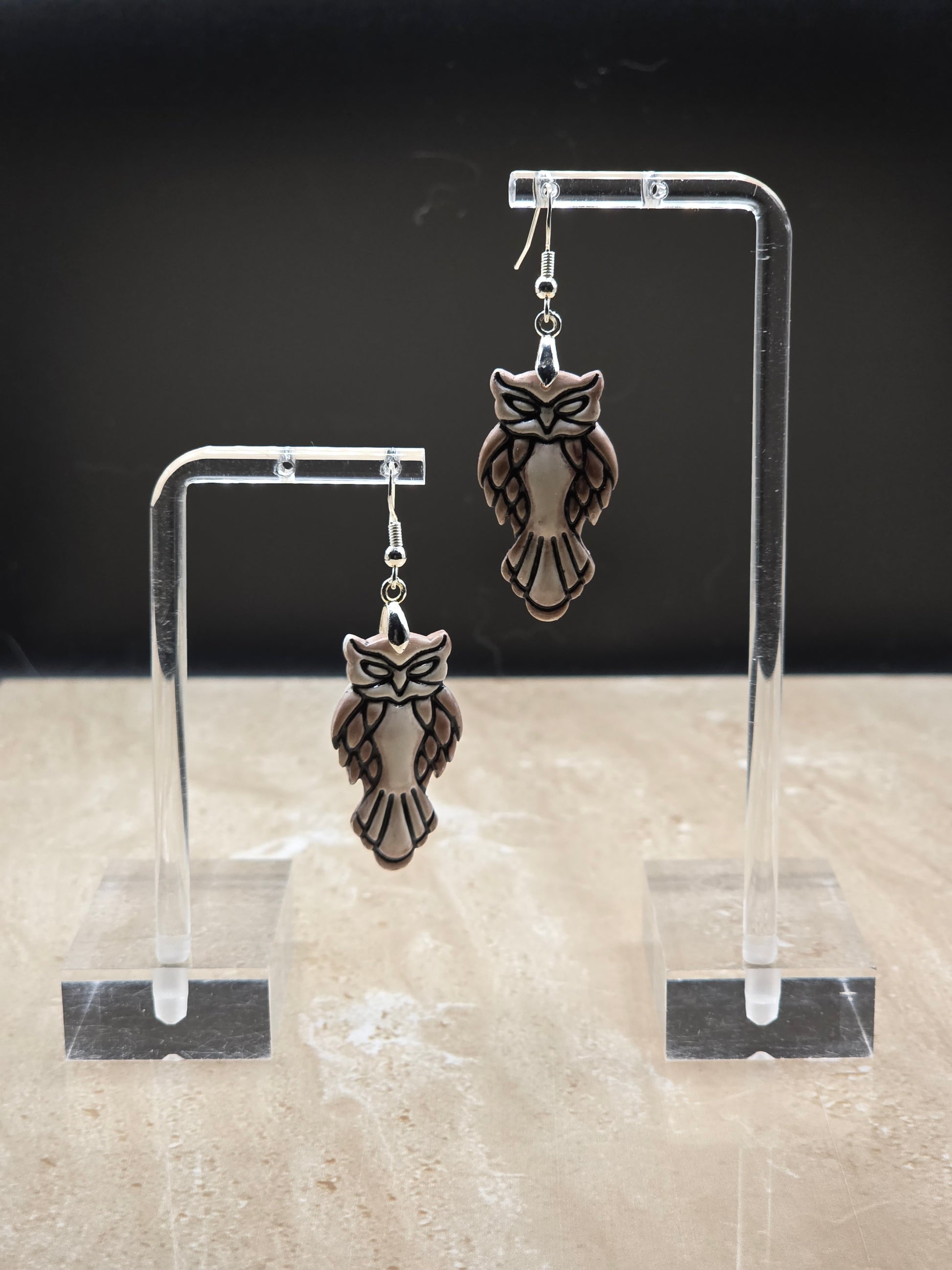 Beautiful owls made with polymer clay and a touch of pastels with Sterling Silver hooks.